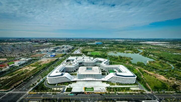 这是2024年9月13日拍摄的中国星网雄安总部办公楼(无人机照片)。新华社记者 牟宇 摄