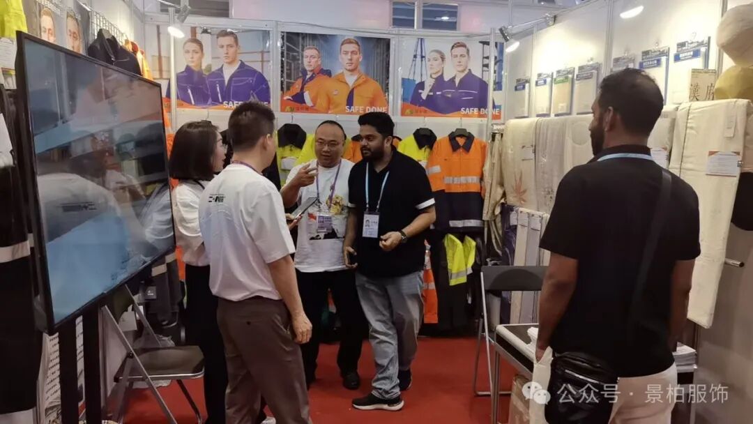 在总经理樊晋慧的亲自带队下,景柏以自信昂扬的姿态,携功能性工作服、家纺及絮片等核心产品惊艳亮相。展会现场,景柏展位人潮涌动,来自澳大利亚、阿拉伯、塔吉克斯坦、巴西等国家的专业采购商纷纷驻足,被其新颖独特的产品所吸引,深入交流洽谈的氛围热烈浓厚。