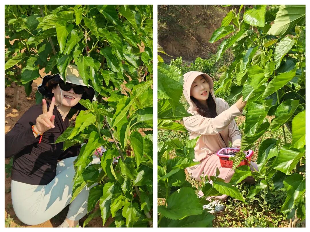 活动首站来到禹珈豪丝业桑葚园,初夏的桑园里,紫黑饱满的桑葚缀满枝头,大家穿梭于桑林之间采摘鲜甜果实,分享着儿时与桑葚相关的端午记忆,体验“参差红紫熟方好,一缕清甜心底来”的田园乐趣,欢声笑语在桑园里此起彼伏。