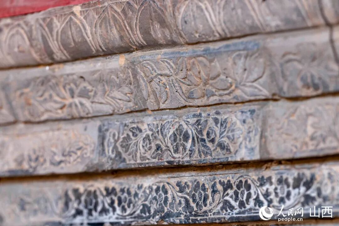 正殿中央现存青石雕须弥座式神台,高约0.8米、边长约3米,其形制与北宋《营造法式》“垒砌须弥坐殿阶基”条目记载完全吻合。束腰处嵌饰牡丹、荷花、莲瓣等浮雕图案,中央镶嵌金大定十二年重修题记碑。