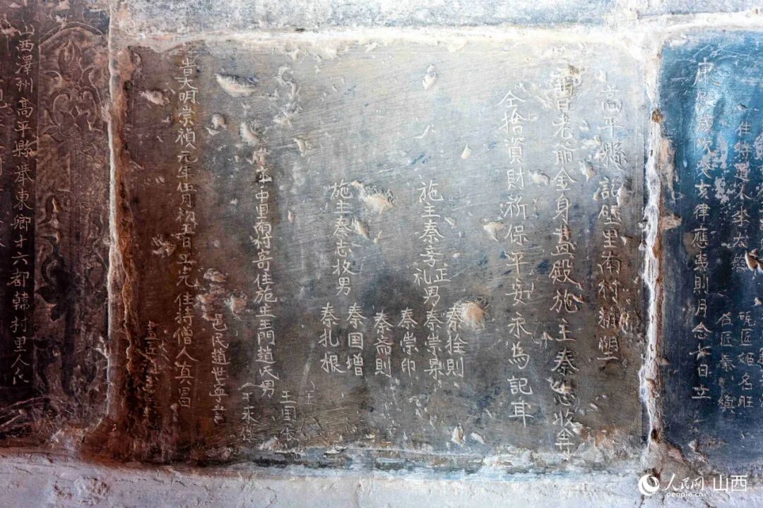 正殿两侧的石碑背面均刻着昔日各村、社、字号、个人捐来的银两花名。东碑镌刻捐资名录137人,涵盖高平、陵川、泽州三地62个村落及商号。由此可知,明清晋东南地区商业的发展和商人群体的活跃为民间信仰的繁荣提供了必要的经济基础。