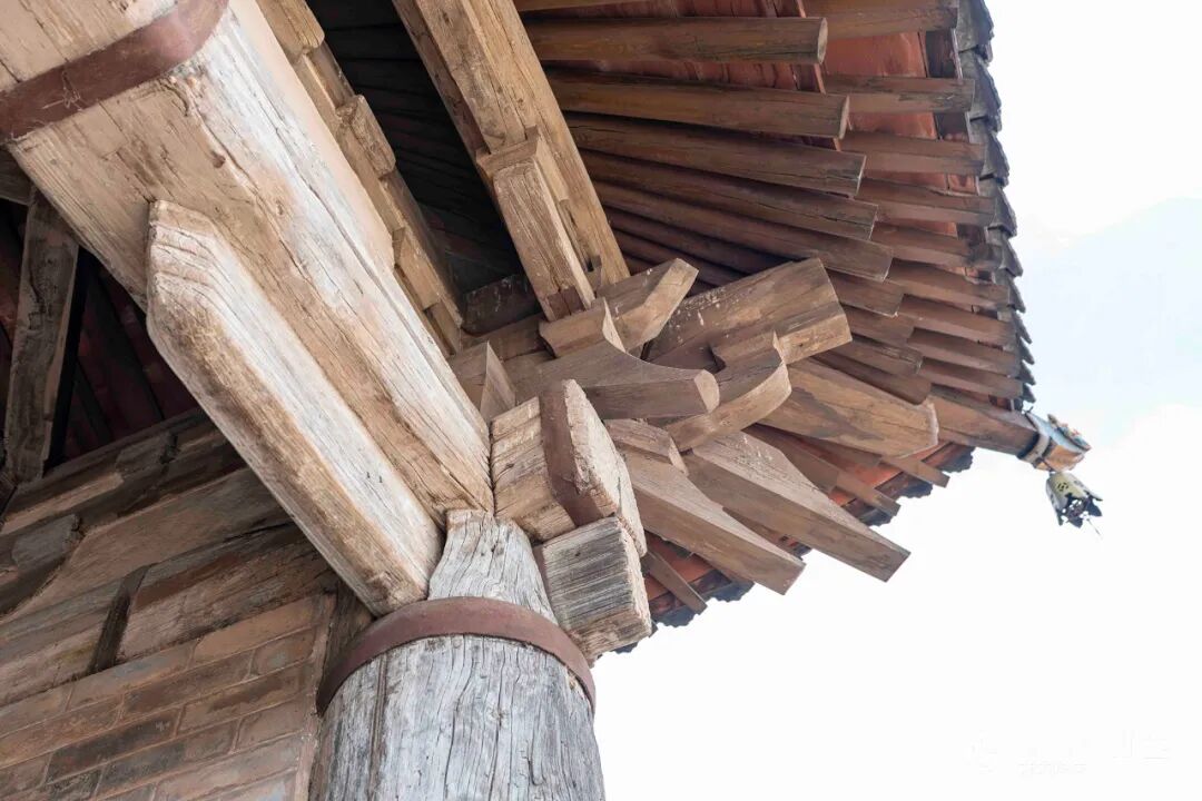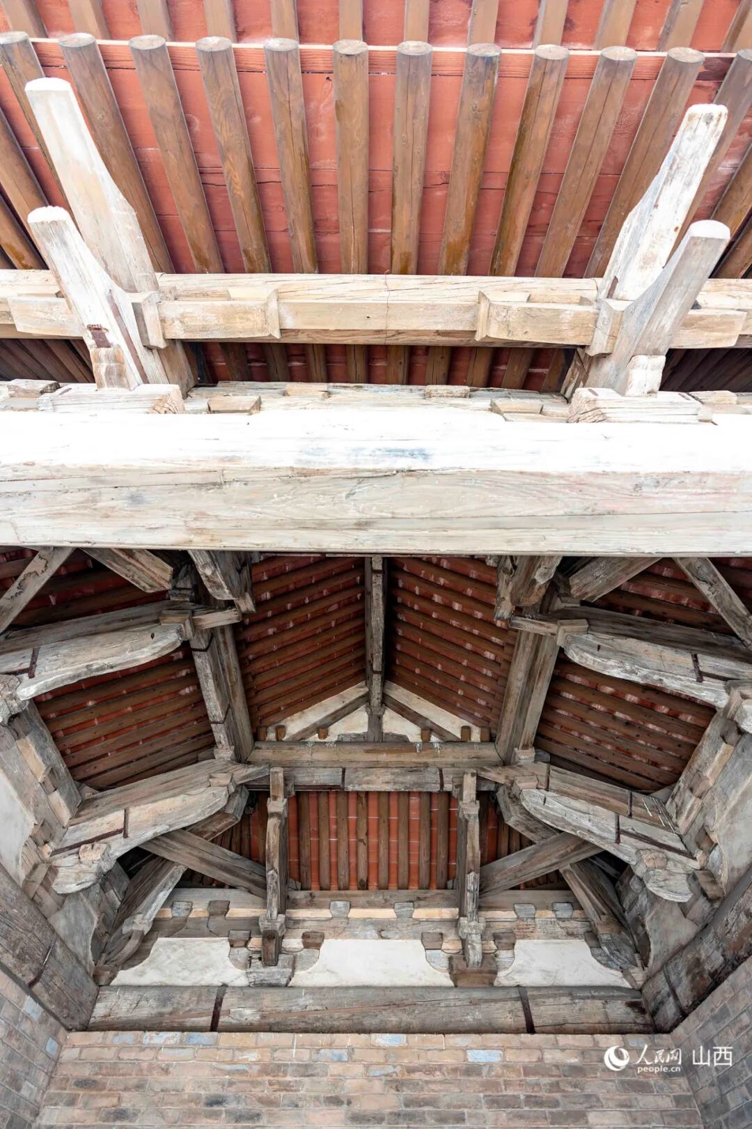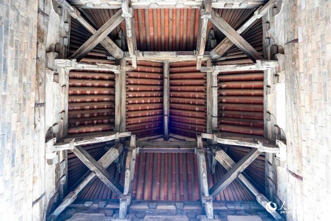 戏台三面用厚墙进行围合,虽然舞台看似变得封闭,但这样不仅可以有效聚拢演员声音,还可以使声音集中反射向台口。这样台下观众不仅可以听到演员本声,还能听到接受声,起到了扩音器的作用。这种封闭的表演空间,也保证了演员免受风雨袭扰。