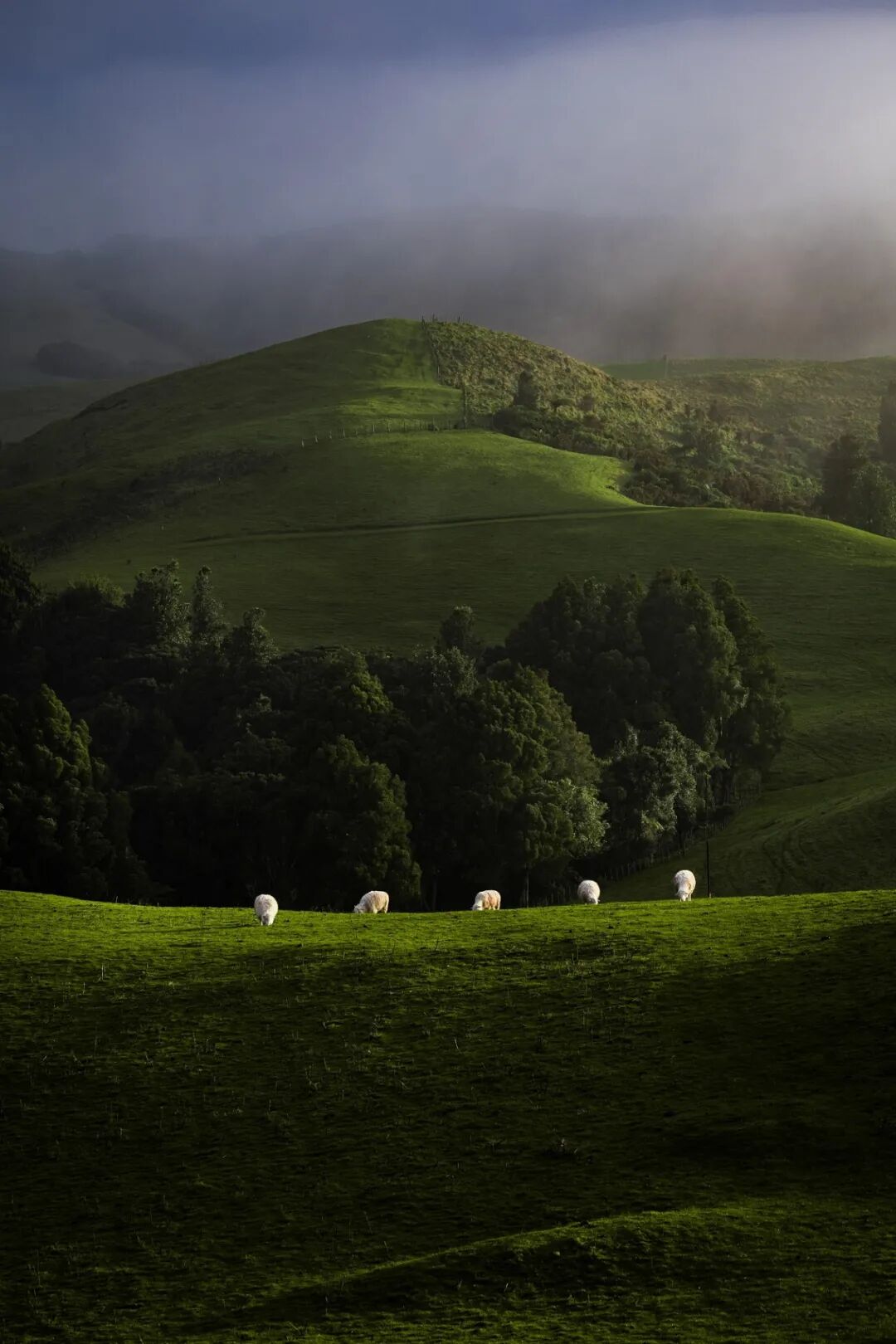 作品简介:新西兰奥克兰市的一个农场,清晨的雾气缓缓褪去,金色阳光洒在柔软起伏的绿坡上,几只羊安静地吃草,仿佛时间都慢了下来。这是自然与宁静的完美结合,像是一首无声的牧歌。