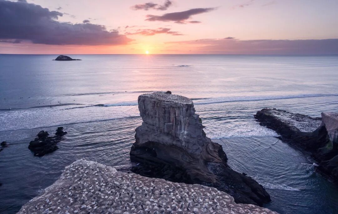 作品简介:夕阳缓缓沉入太平洋,海浪轻拍岩岸,成千的塘鹅静候夜幕,是光与影最后的交响。
