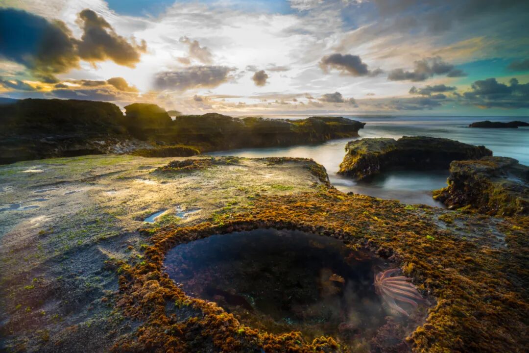 作品简介:新西兰奥克兰市的Muriwai Beach, 这片岩岸被海水反复冲刷,留下了一个宛如“眼睛”的潮池,静静凝视着落日。水面与天空交融,岩石与苔藓点缀其间,记录下新西兰海岸最原始的力量与柔情。
