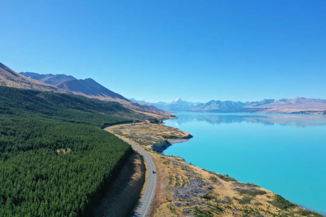 作品简介:在蓝得不真实的普卡基湖边,一条蜿蜒的公路悄然通往远方的库克雪山。阳光洒在金黄的草原和墨绿的森林上,大自然的广阔令人心生敬畏。