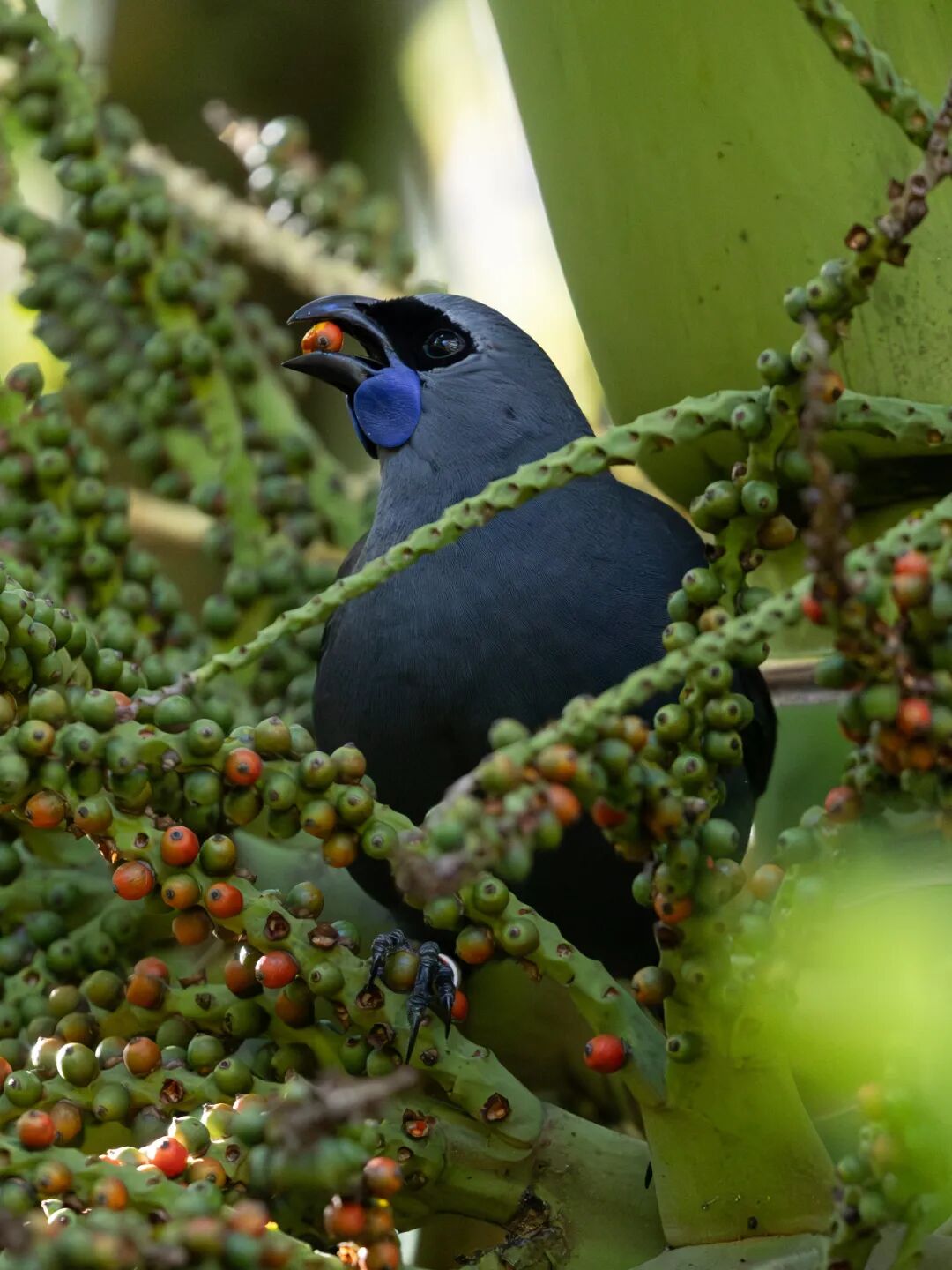 作品简介:新西兰森林深处,这只Kōkako正享用自然的馈赠。果实与晨光,是它的语言。