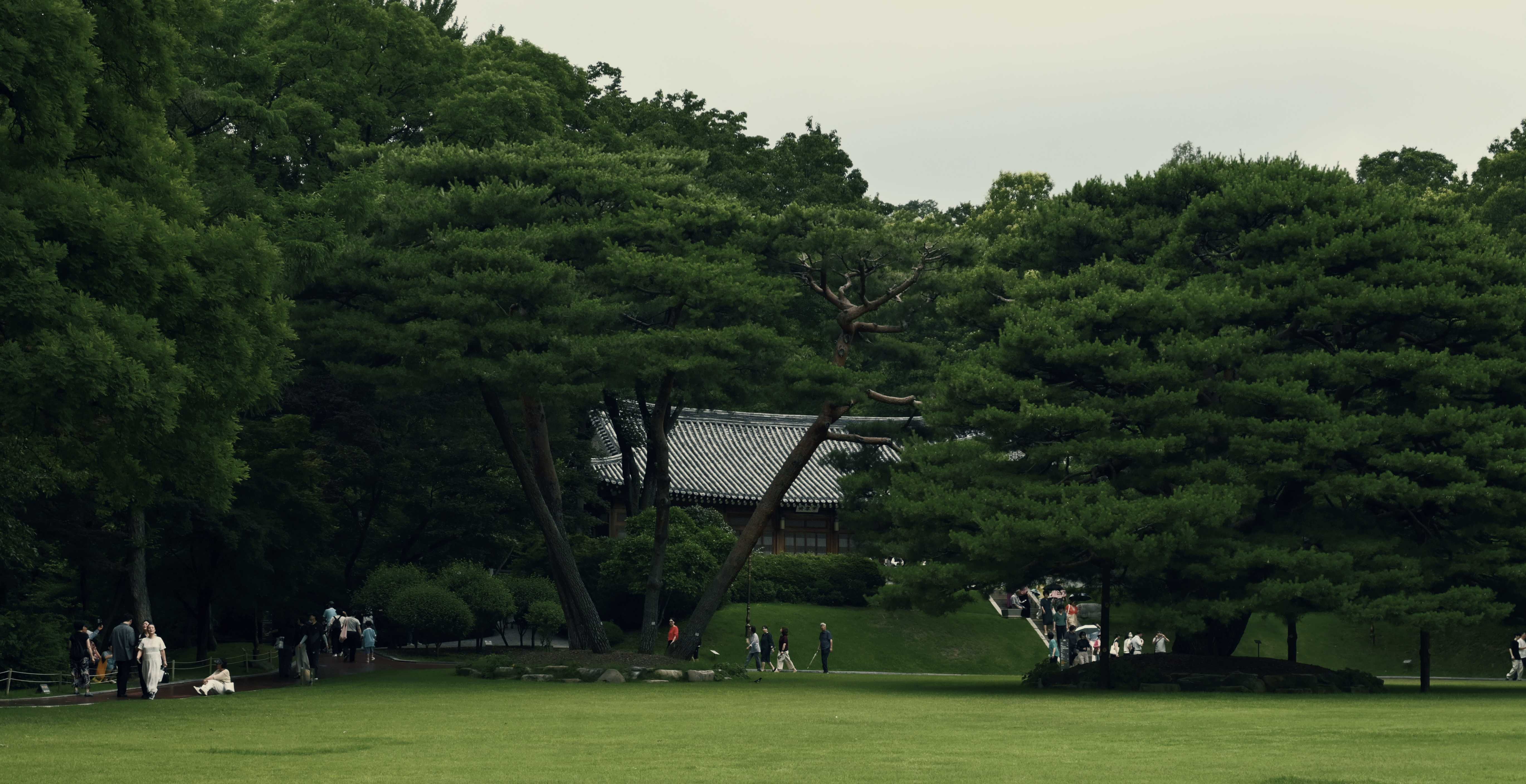 作品简介:高大的松树掩映宫殿屋脊,游人悠然散步,宫苑与自然融为一体。置身其中,山木深处,绿意如潮,仿佛大地的呼吸在枝叶间起伏。