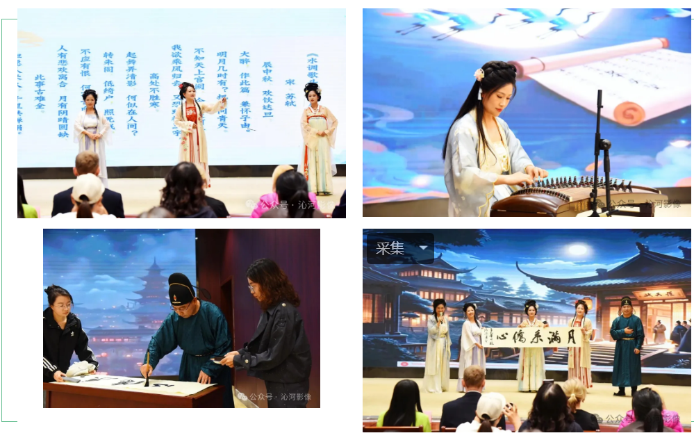 由沁水县侨联工作人员、侨属代表及侨界志愿者共同演绎诗朗诵,搭配古筝演奏与现场书法展示,以经典诗词寄情、传统艺术表意,生动传承中秋文化内涵,营造出浪漫雅致的节日氛围。